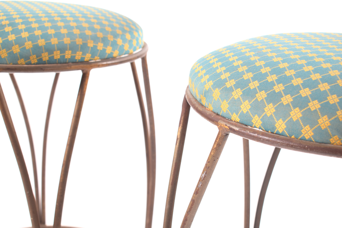 Par de Bancos de Beat em metal e tecido da época contemporânea. Produzido em 1960 na Dinamarca. Dimensões 90x40x40cm.
