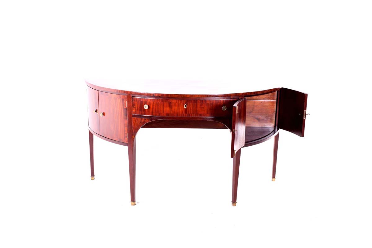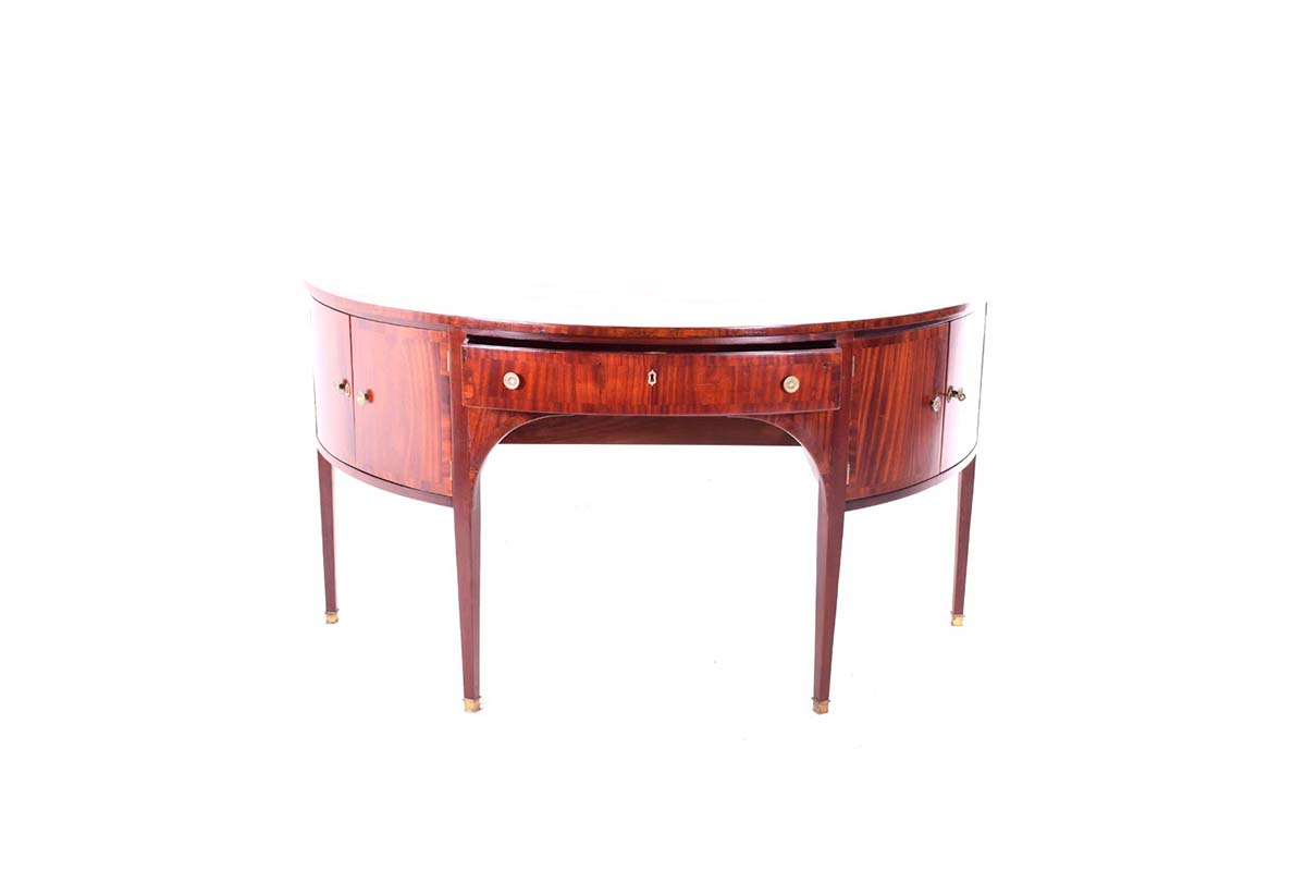 Aparador meia lua em Mogno e ferragens em metal. Da época Império. Séc XX e de origem, Inglaterra.