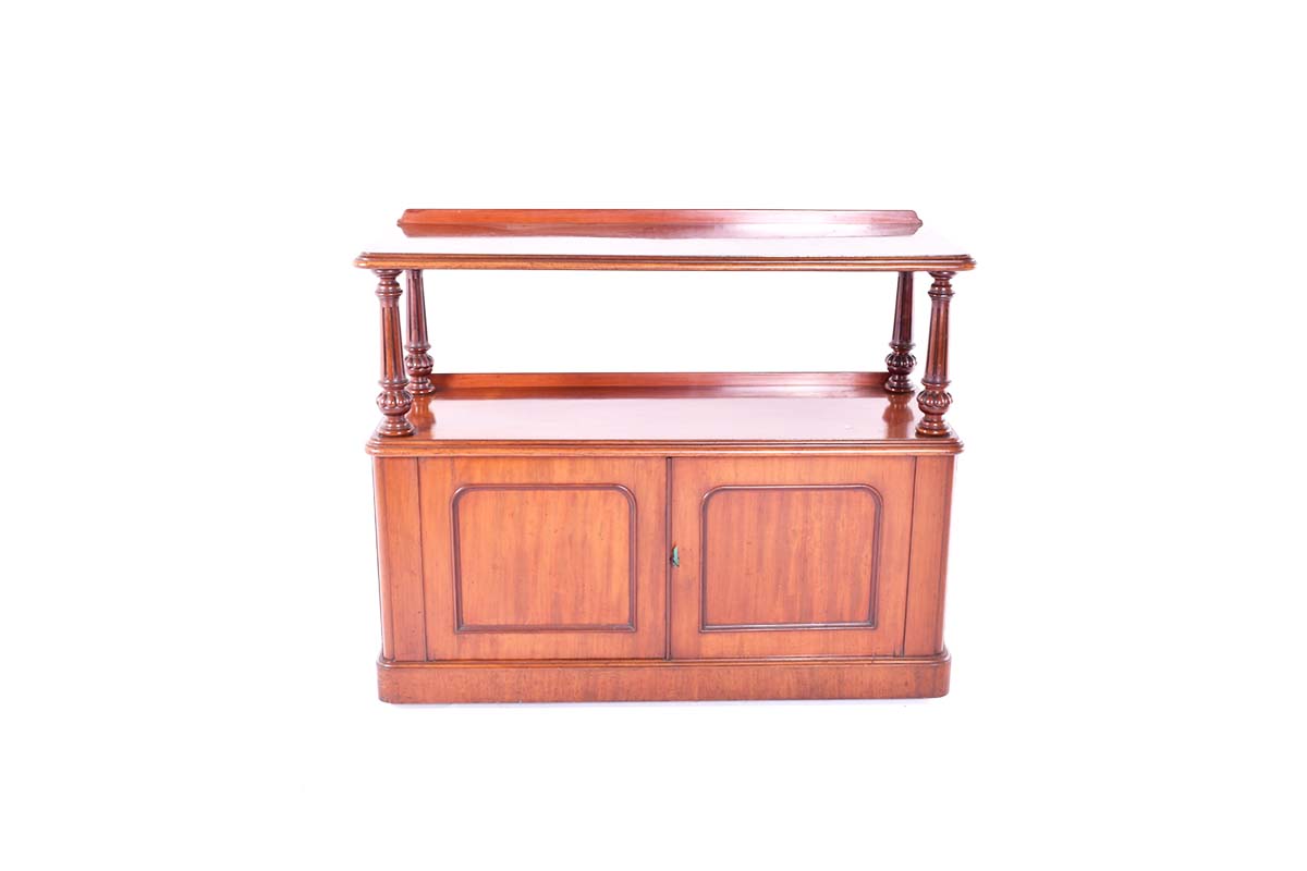 Criado mudo/Dumb waiter com duas portas, em Mogno da época Vitoriano. Séc. XX e de origem, Inglaterra.