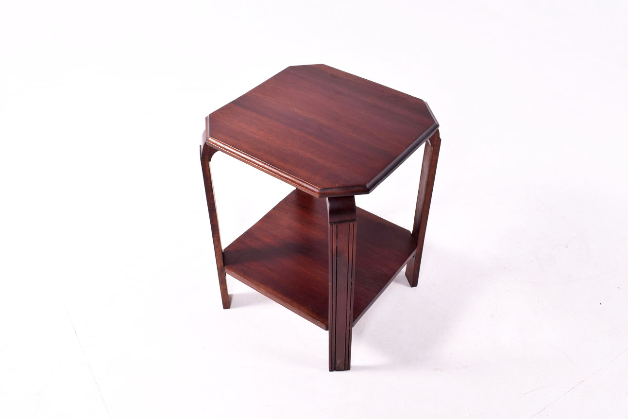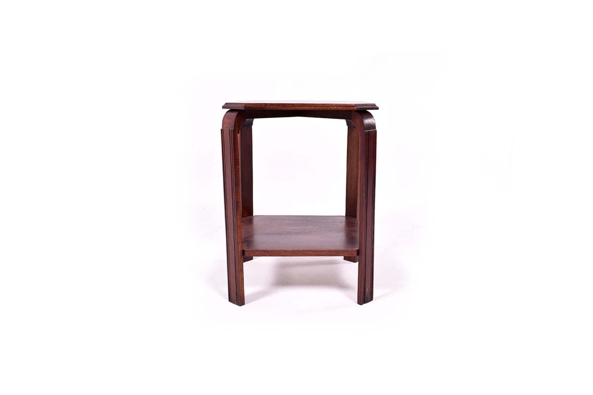 Mesa de apoio baixa Art Deco. Quadrada, com uma prateleira e cantos recortados. Anos 20, origem francesa.