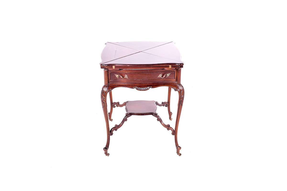 Mesa de jogo em Mogno de época Luís XV. Abre em forma de envelope. Origem, Inglaterra.