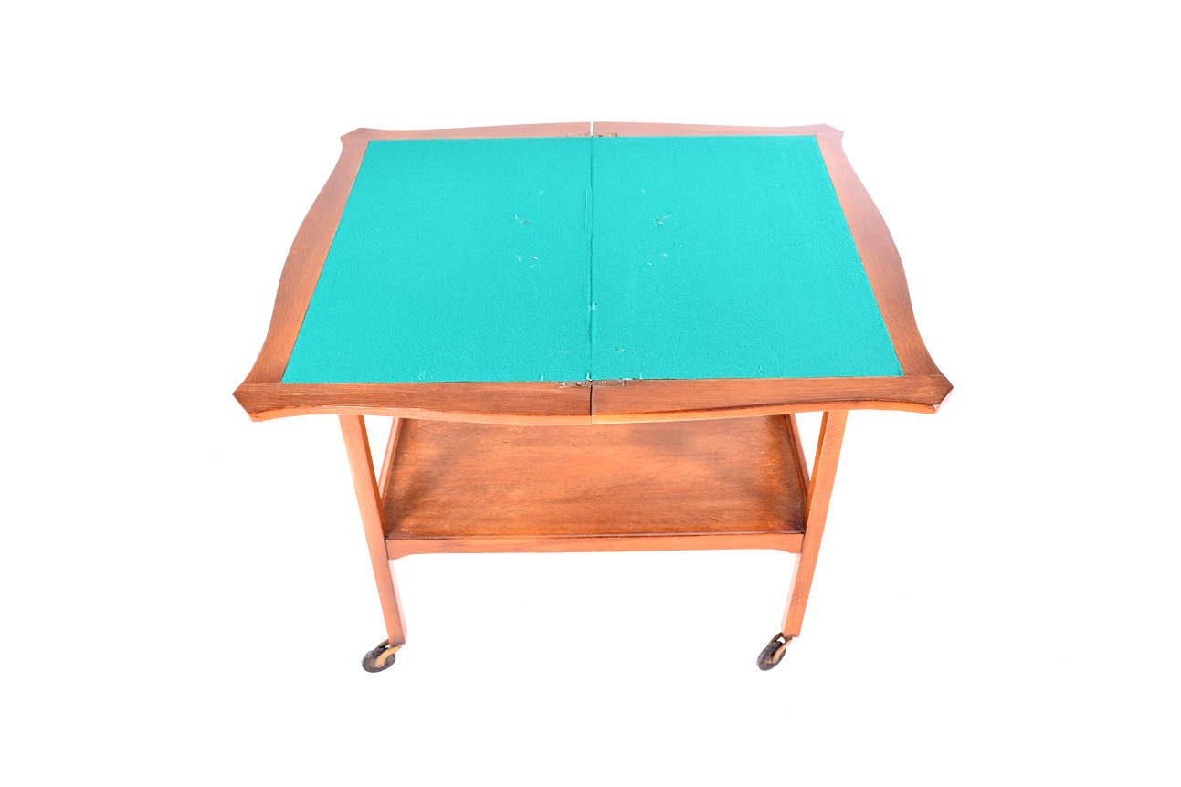 Mesa de jogo contemporânea, em carvalho. Origem Dinamarquesa, anos 50. Dimensões 74x72x42cm.