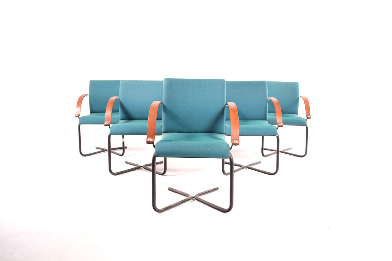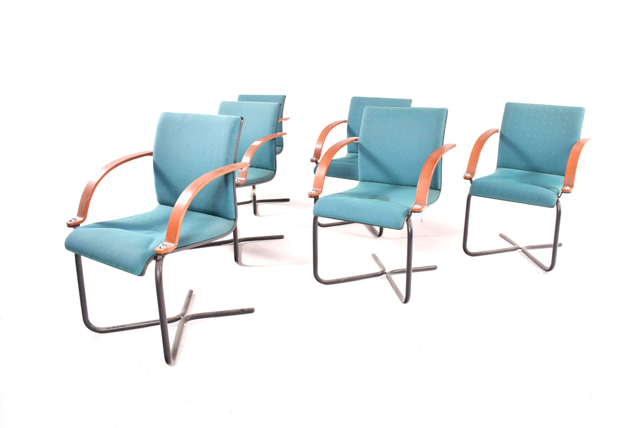 Cadeiras de Escritório em madeira, tecido e metal da época contemporânea. Produzidas na Dinamarca. Modelo System B8. Dimensões 90x58x53cm.