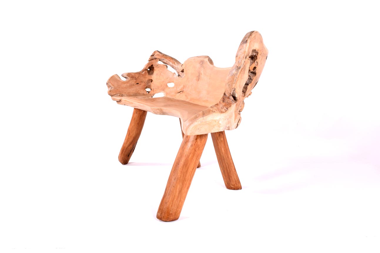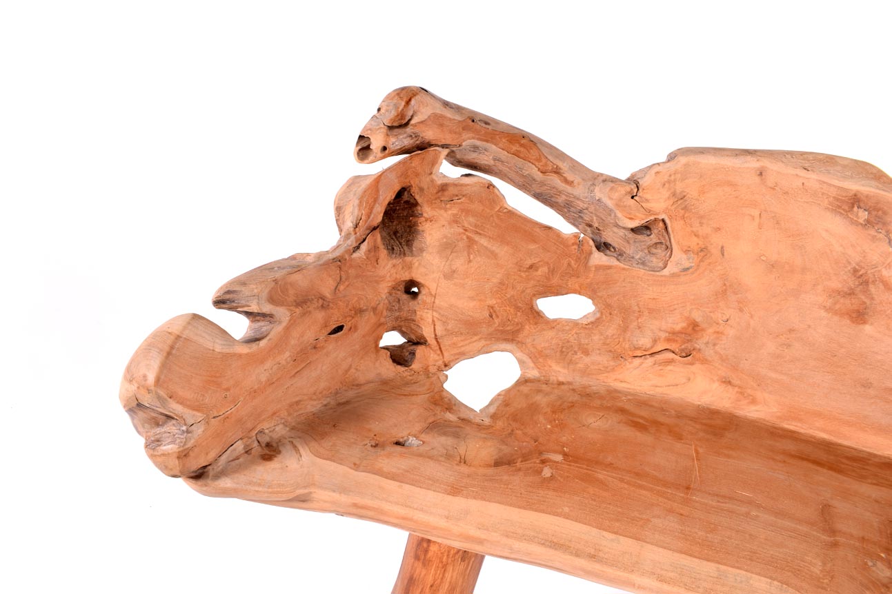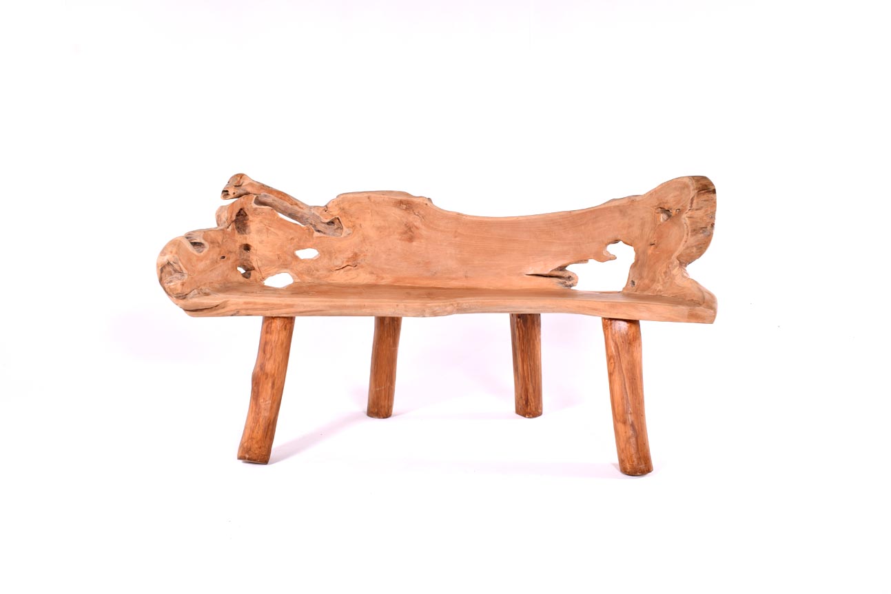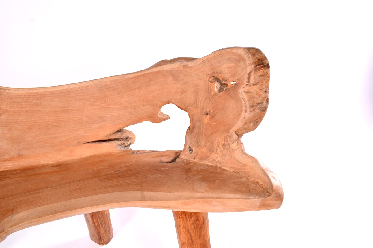 Banco em teca e raiz de teca da época contemporânea. Produzido em 1950 na Dinamarca. Dimensões 83x170x60cm.