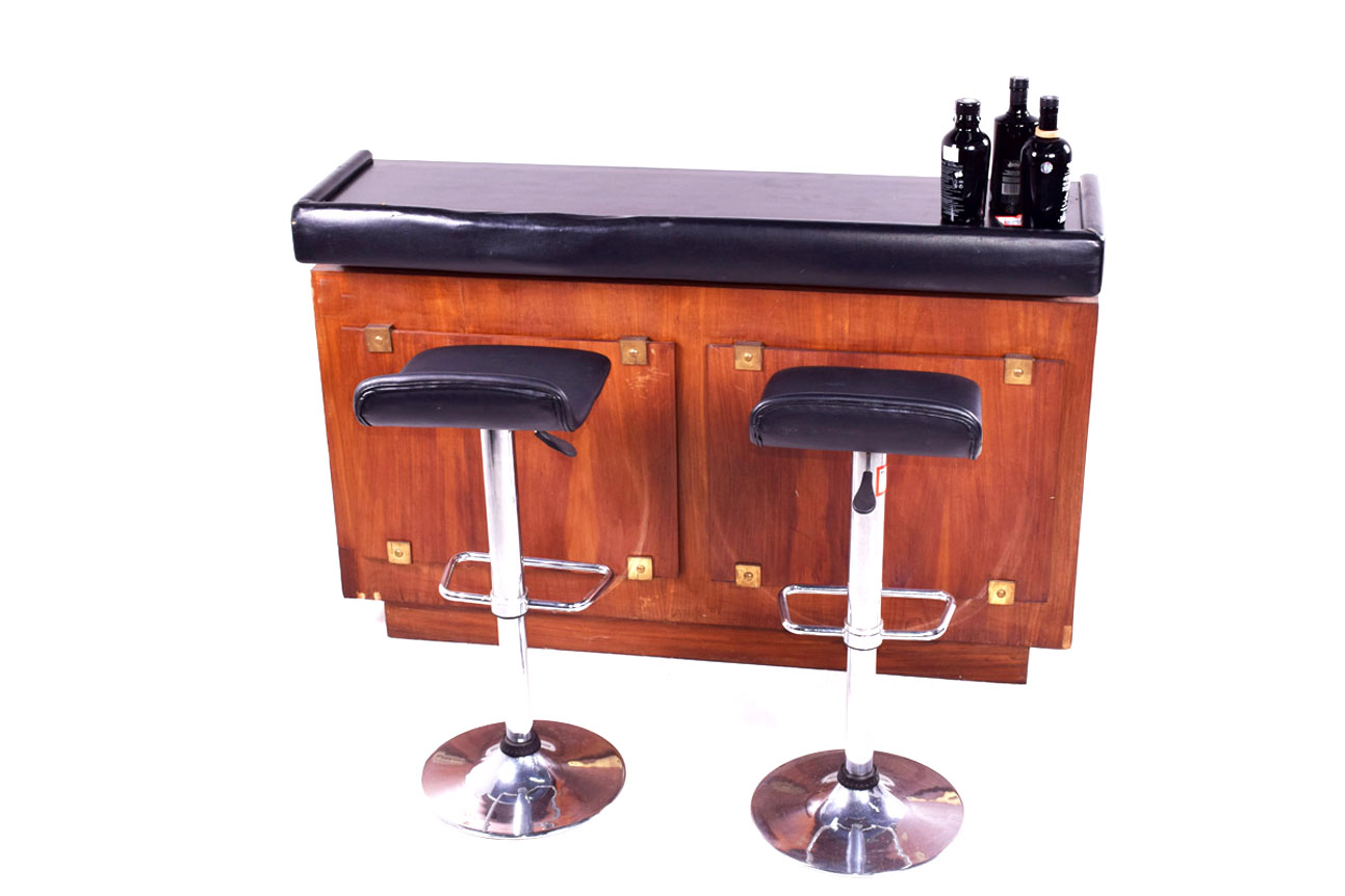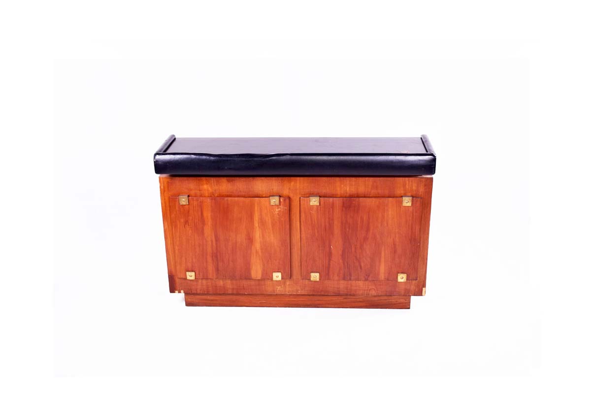 Balcao em Mogno e Pele com aplicações em Latão da época contemporânea. Produzido em 1960 em Portugal. Fora de stock. Veja mais bares