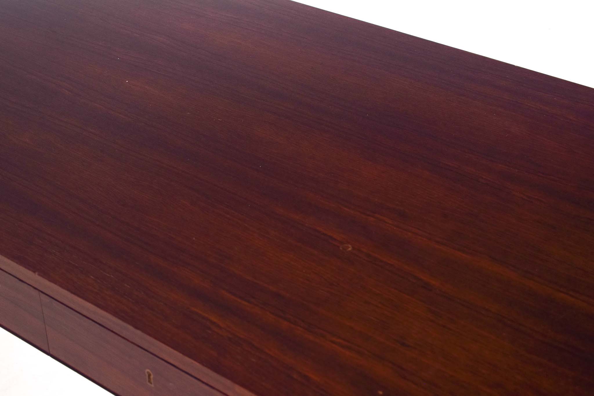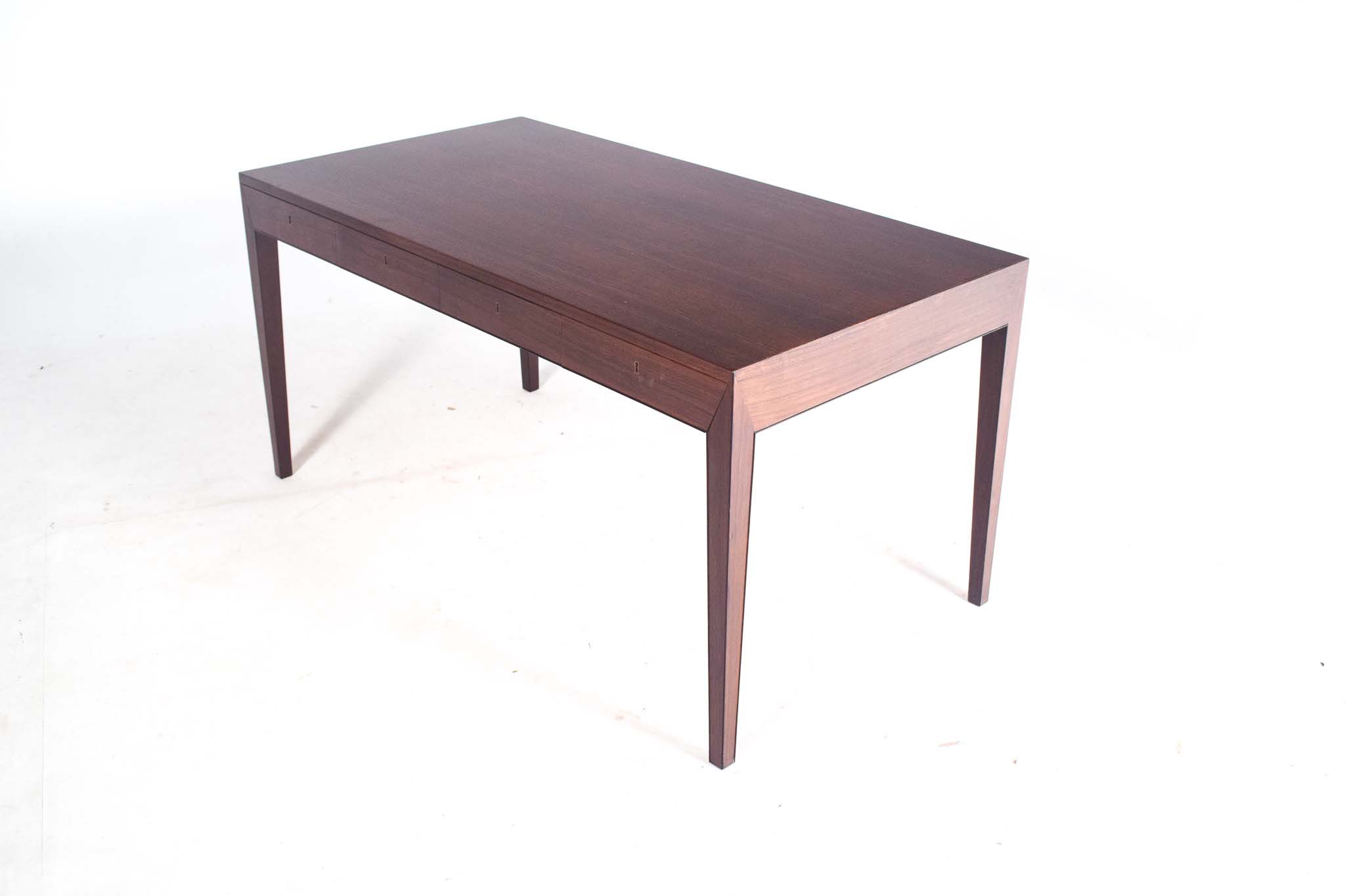 Esta secretária é feita em pau santo. . O Modelo 36, do designer dinamarquês Severin Hansen, foi desenhado em 1958 e produzido pela Haslev.