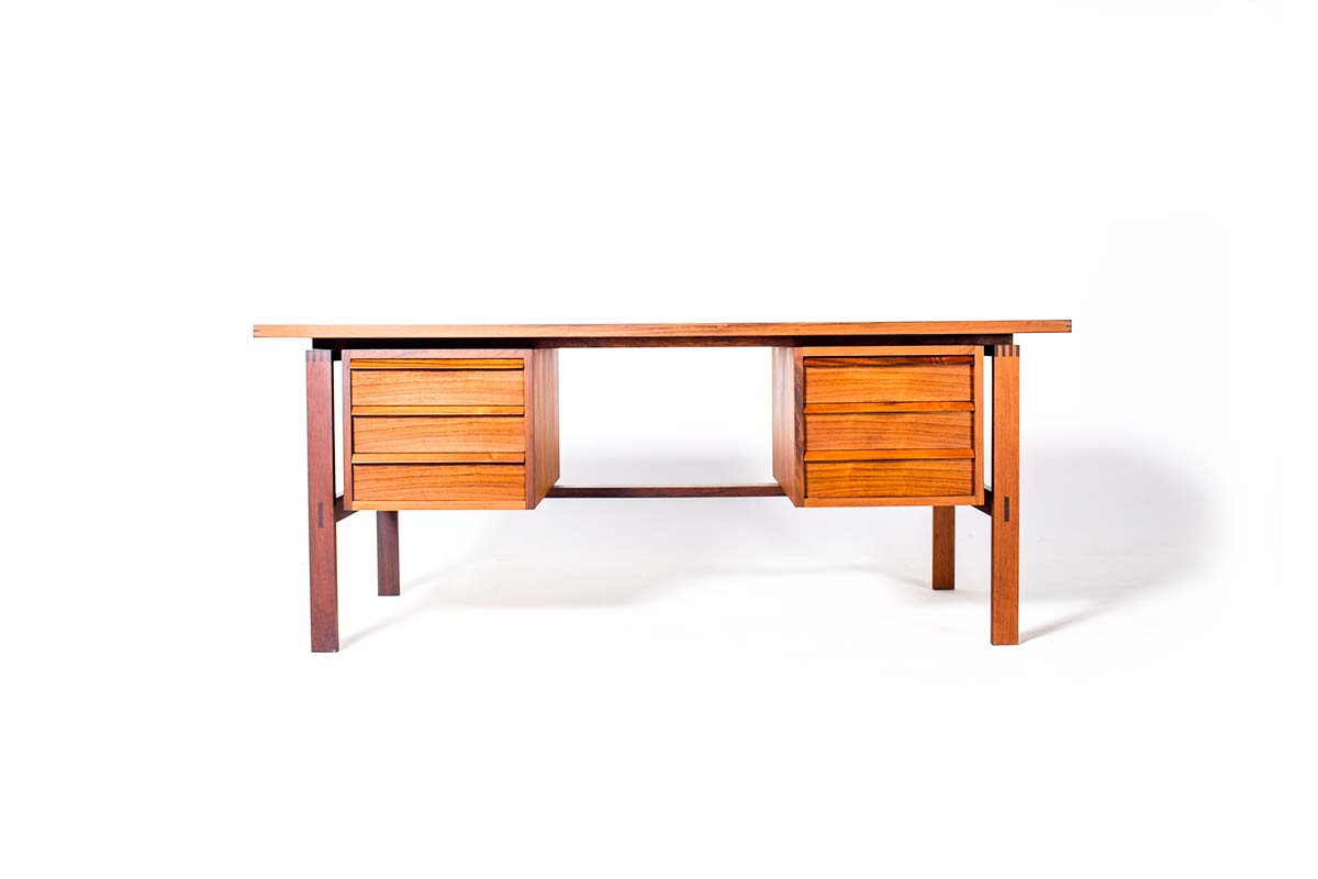 Secretária em pau santo, desenhada por Svend Aage Madsen. Produzida na Dinamarca por Sigurd Ansen Mobelfabrik, anos 70. Fora de stock. Veja mais secretárias