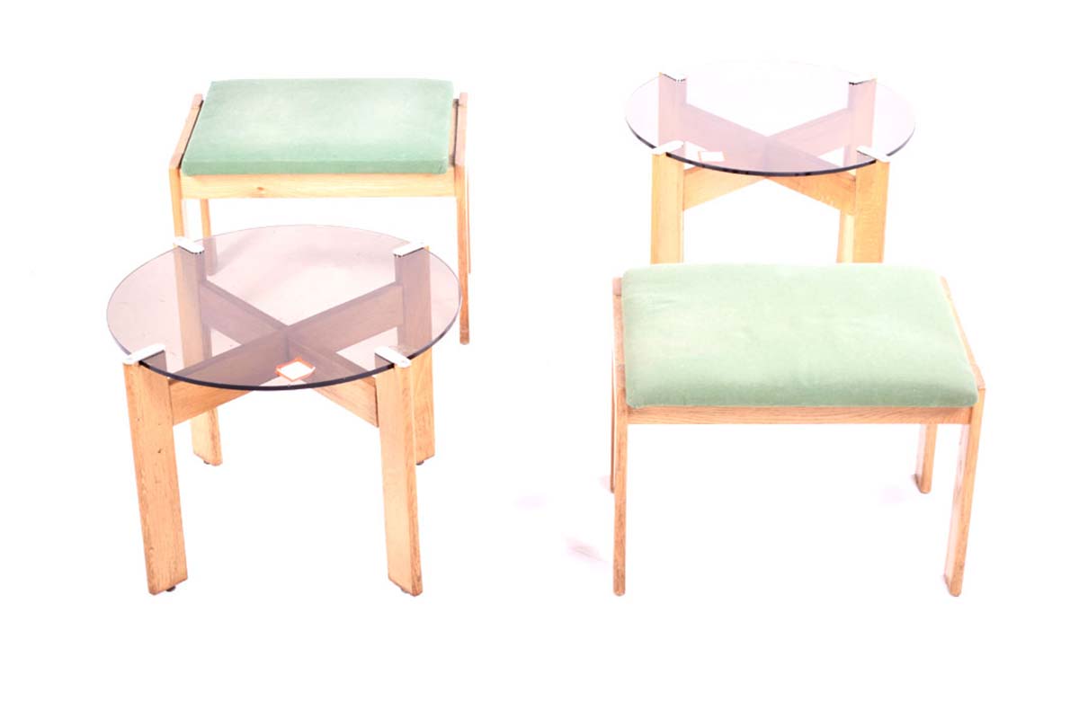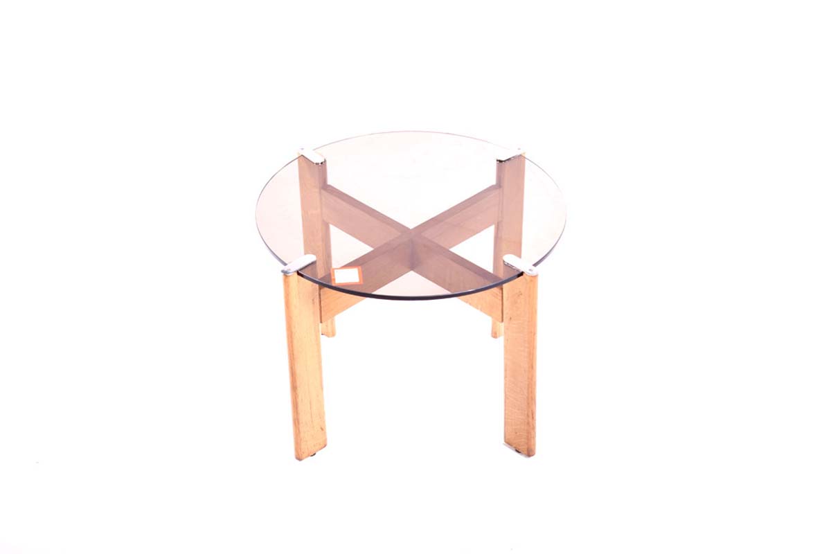 Mesa de Apoio em carvalho e vidro escurecido da época contemporânea. Produzida em 1980 em Portugal.