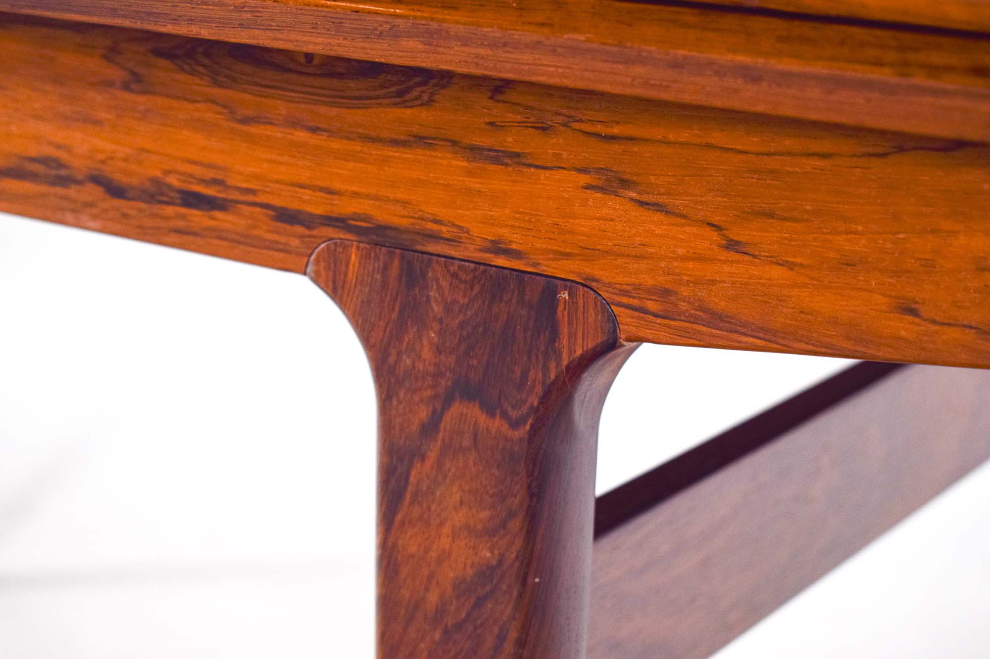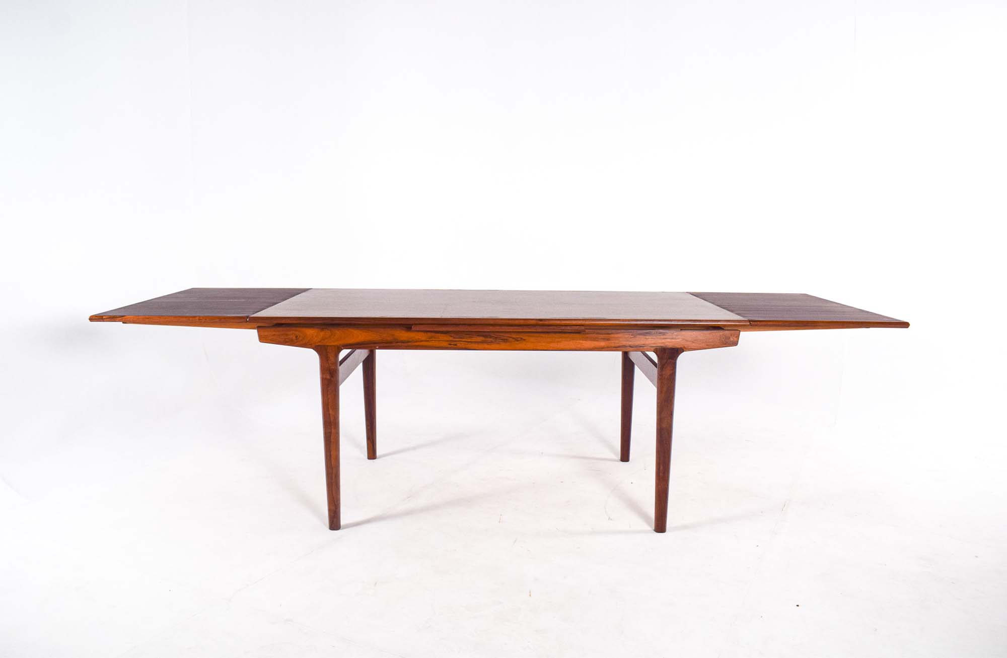 Mesa de jantar retangular fabricada por Vejle Stole Mobelfabrik, talvez projetada por Henning Kjaernulf na Dinamarca. Carimbada com a marca do fabricante.
