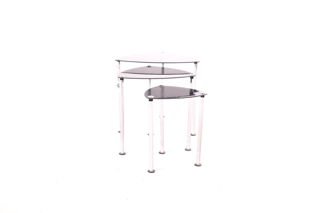 Mesas Mãe em metal cromado e vidro temperado da época Contemporânea. Produzido em 1960 na Dinamarca.