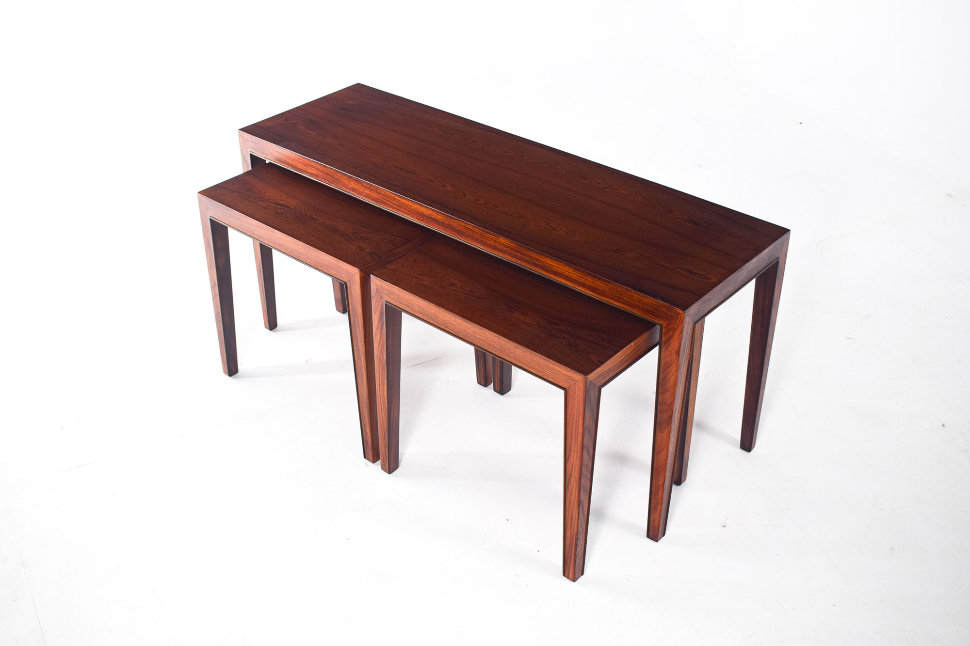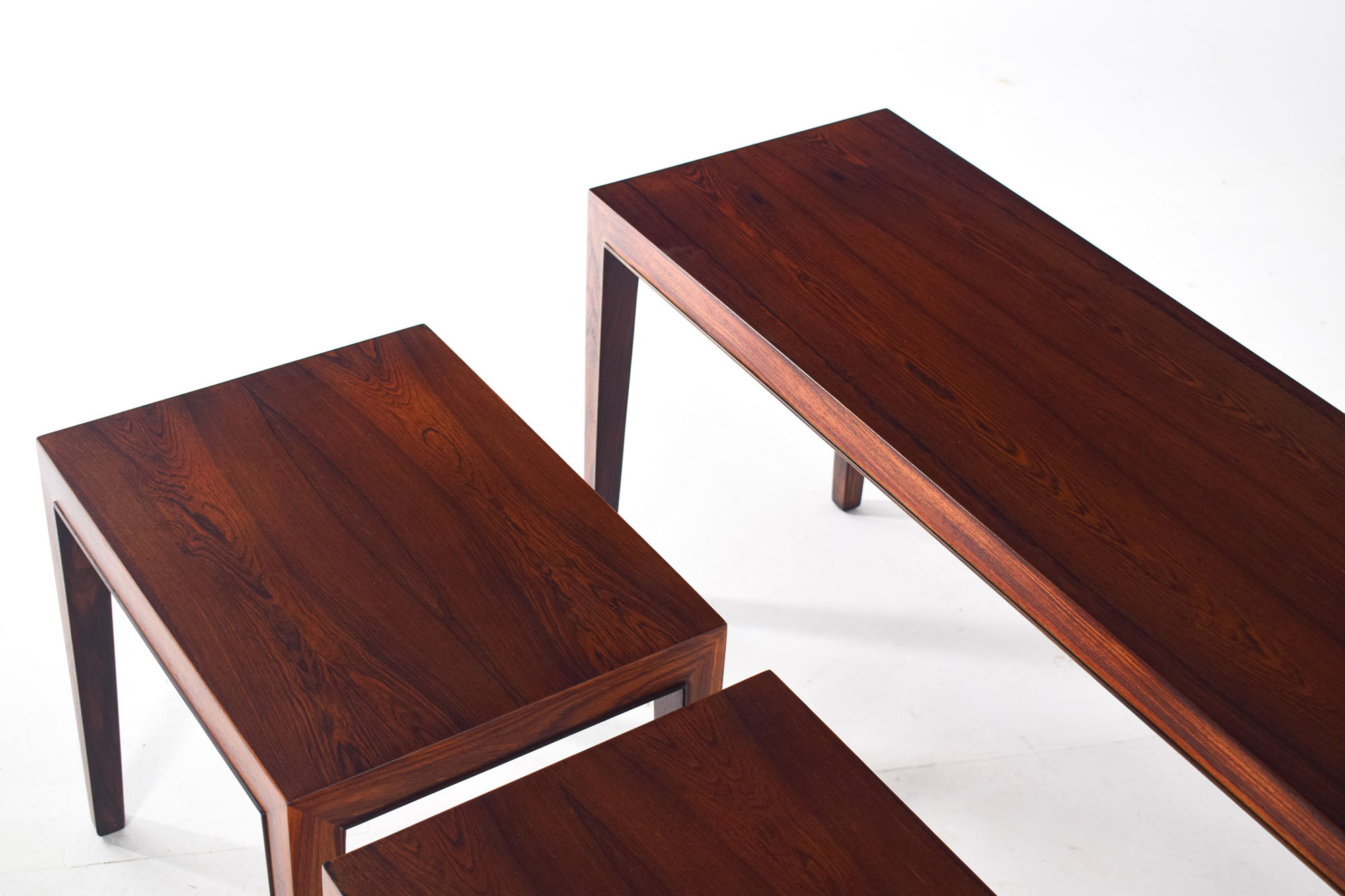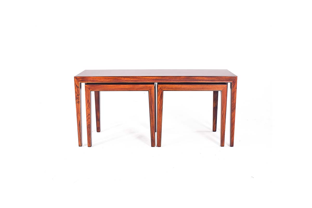 Conjunto de três mesas de pau santo desenhadas por Severin Hansen Jr. para Haslev Møbelsnedkeri na Dinamarca em 1960. Fora de stock. Veja mais mesas
