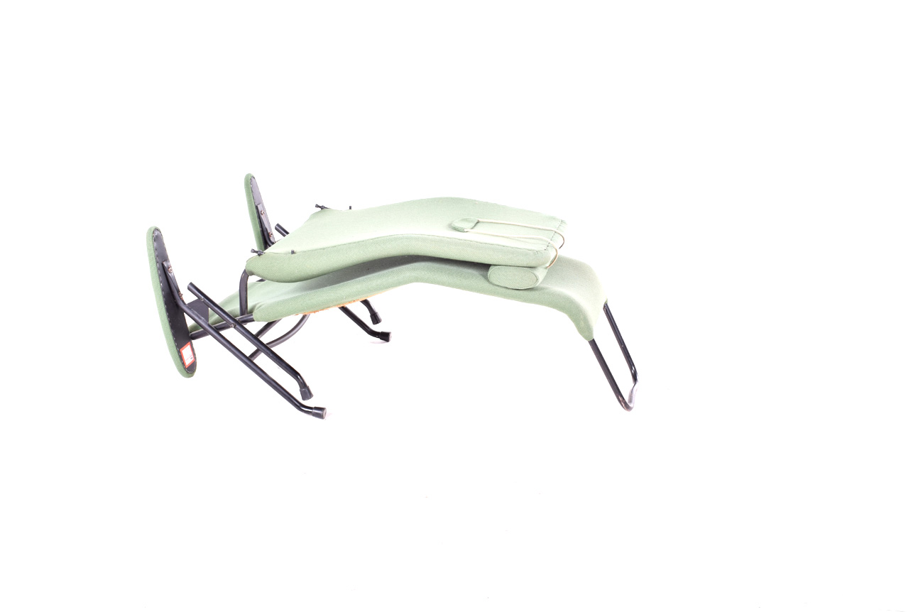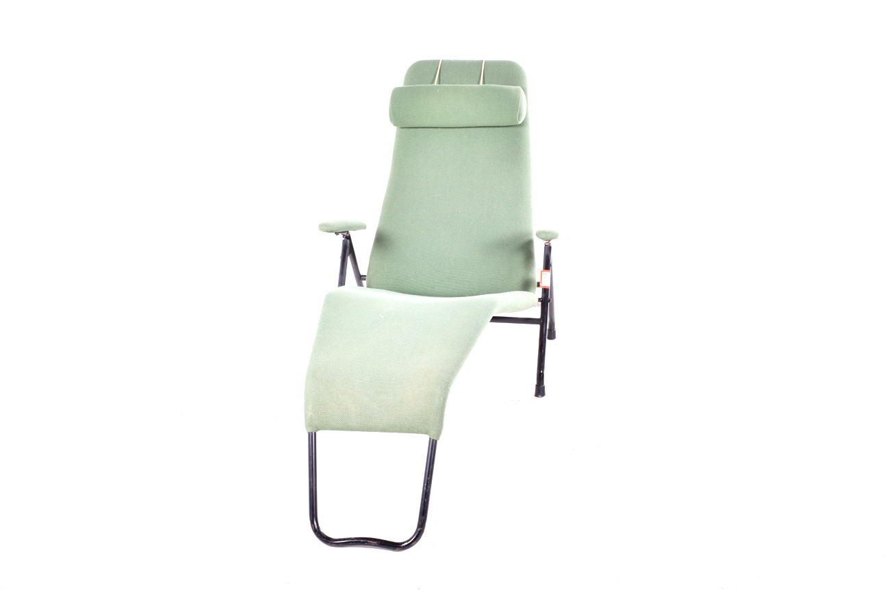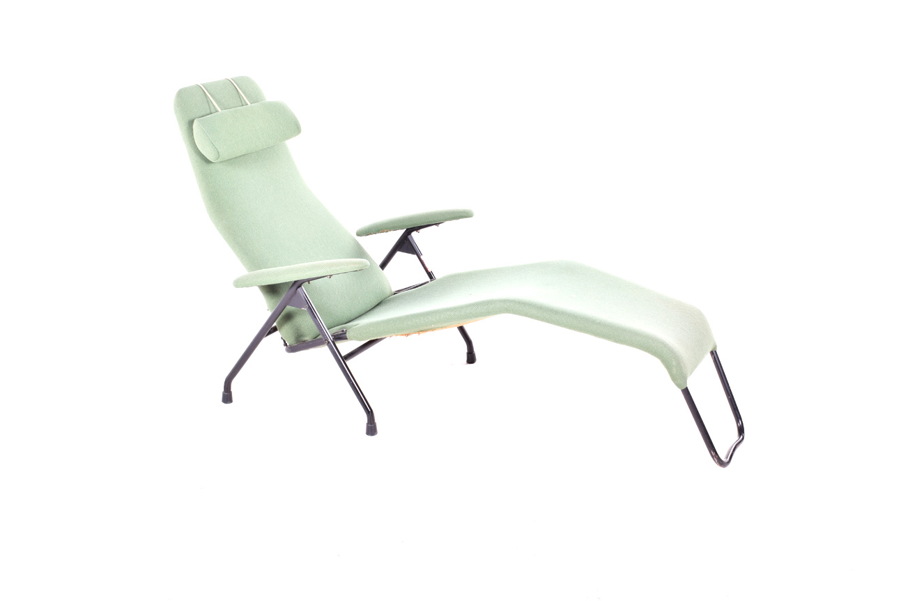 Espreguiçadeira em tecido e metal da época contemporânea. Produzida na década de 1960 na Dinamarca. Dimensões 85x73x160cm.