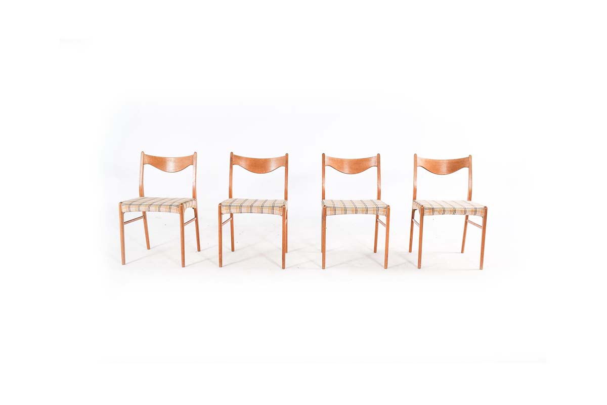 Set of four oak dining chairs designed by Arne Wahl Iversen, model Gs60, manufactured by Glyngore Stolefabrik in Denmark, 1960s.
