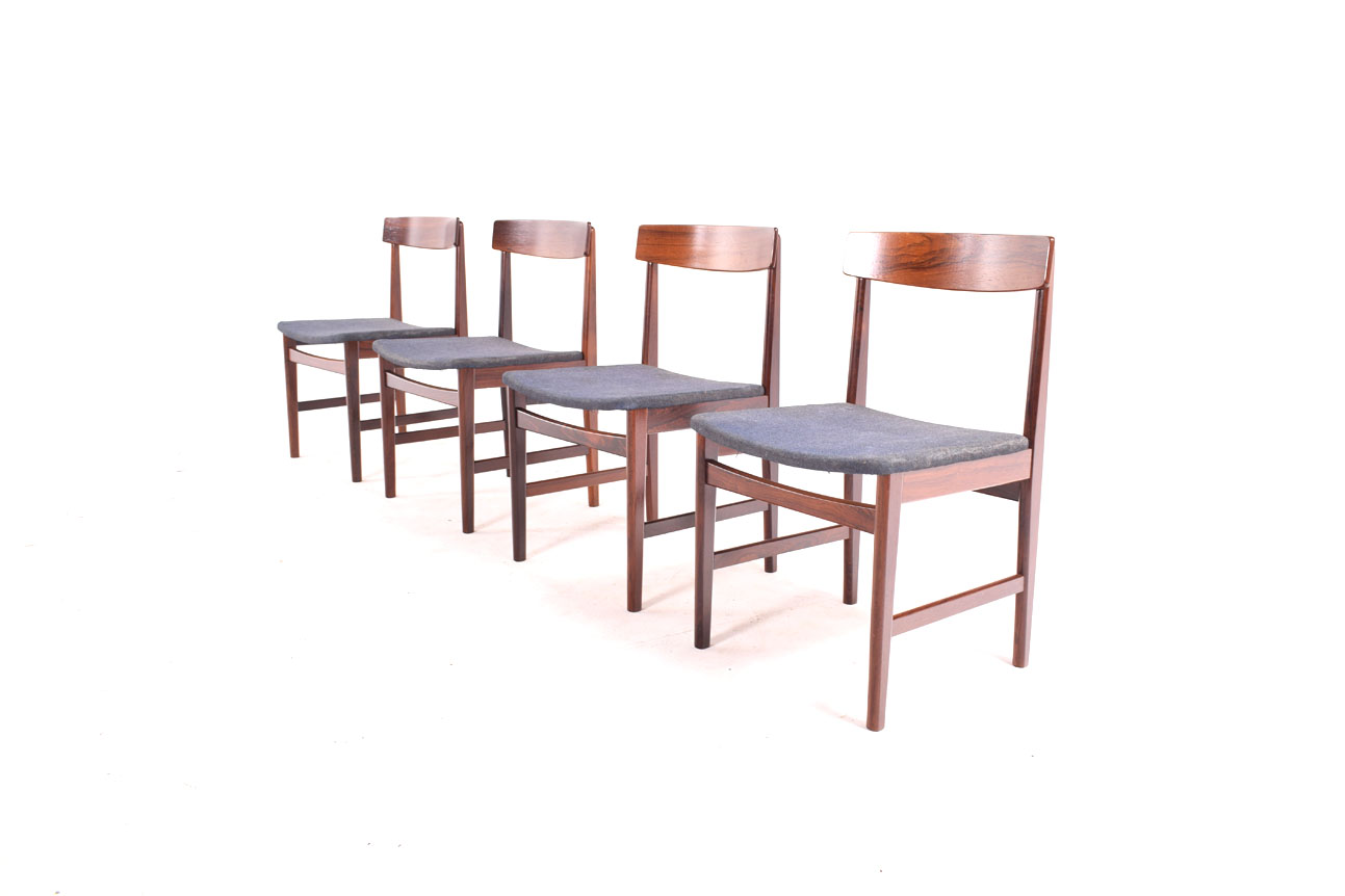 Set of 4 Rosewood Dining Chairs with contemporary fabric. Produced in 1960 in Denmark. Dimensions 77 x 47 x 47 cm.